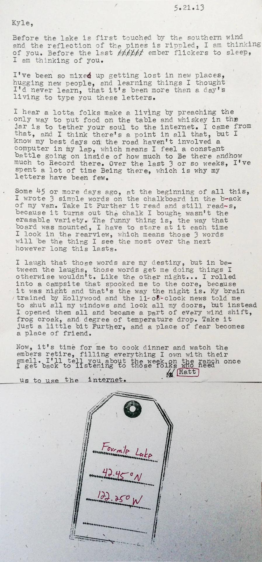 journalism, exploration, travelMatt McDonaldMay 21, 2013letters, further, internet, fear, oregon, inspiration, on the road Letter 5.21.13 journalism, exploration, travelMatt McDonaldMay 21, 2013letters, further, internet, fear, oregon, inspiration, on the road Matt McDonald Facebook0 Twitter LinkedIn0 Reddit Pinterest0 0 Likes
